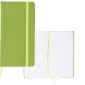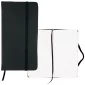 This mini hard-bound journal has a soft touch PVC cover. Both elastic and ribbon match cover color. Journal includes approximately 60 lined sheets (not refillable). Complies with Prop 65. 3.5" W x 6.5" H x 0.43" D
