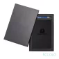 Make a statement. Make waves. The subtle yet modern colored stitching in this bold new journal collection sets it apart. Add your logo to the cover and set your brand apart too. The New Wave Journal & Clicker Pen Gift Set Features...- P197 Clicker Pen: Aluminum click-action ballpoint pen with chrome trim and medium German made refill.- Black die-cut foam Gift Box- Textured FlexiCover- Black covers with wave stitching on spine (color matched)- 192 white pages- Acid-free, 80 gram paper- Undated ca. 5.75" W x 8.25" H
