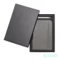 Quickly becoming one of our most popular designs with a pen holder in the spine, Tempo journals are sure to be the new favorite at meetings and on the desktop. The Tempo Journal & Clicker Pen Gift Set Features...- P197 Clicker Pen: Aluminum click-action ballpoint pen with chrome trim and medium German made refill.- 12 Month undated calendar- Black die-cut foam Gift Box- Smooth vegan leather stitched cover- Exclusive pen holder in spine- Elastic band closure (color matched)- 192 perforated white . 5.75" W x 8.25" H