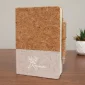 This retail inspired design showcases sustainability hosting a cork & cotton cover, complete with cork covered pen. Finish it off with ivory lined paper & you've got a killer looking journal that will go with any brand. Complies with Prop 65. 5.5" W x 8.25" H x 0.5" D