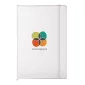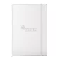 This best-selling hard-cover journal has a little secret it's willing to let you in on a gusseted interior pocket where you can store your business cards or other small documents. Your pen will glide as you write on the 192 ivory, lined acid free pages - a true delight! Use the ribbon as a bookmark to find important pages, and the elastic closure to mark the next blank page.. NOTE When branded, the standard imprint location is centered on the front cover between the spine and the elastic closure. 5.7500" L x 8.3750" W x 0.0000" H