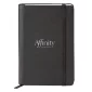 Journal with an interior gusseted pocket on back inside cover and 192 ivory lined pages made with acid free paper non-refillable. NOTE When branded, the standard imprint location is centered on the front cover between the spine and the elastic closure. Please specify if you would like the imprint to be centered on the front cover between the spine and the right edge. Journal inner page dimension is 3 1/2" x 5 1/2". 3.7500" L x 5.6250" W x 0.0000" H