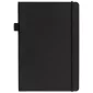 Introducing our Recycled Kraft Paper Cover Journal - A5 5.9" x 8.3" - perfect for individuals who appreciate quality and style. The front cover is made from 2mm thick recycled color craft paper, while the back cover and spine are crafted from black RPET material. This journal features a black elastic pen loop on the spine and a black elastic strap with silver grommets for secure closure. Complies with Prop 65. 5.51" W x 8.27" H x 0.47" D