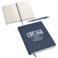 Be prepared for the next seminar with this soft-bound faux leatherette journal that features a penholder on the spine, 80GSM ivory ruled paper, 96 sheets (192 pages) with color matched ribbon bookmark. Color matched click ballpoint pen with black ink and silver clip perfect for soft-cover journal. Complies with Prop 65. 6.125" L x 0.5" W x 8.375" H