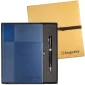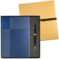 This pen set includes the Duo-Textured Tuscany™ Journal and the Executive Stylus/Pen. Journal is made from soft faux leather with contrasting textured panels. It includes 80 ruled pages, an elastic loop closure and a matching bookmark. The aluminum twist-action ballpoint pen with soft silicone tip is for use with iPads®, iPhones®, tablets and other touchscreen devices. Production time may vary due to imprint method. Complies with Prop 65. 8.63" W x 8" H x 1.44" D