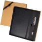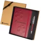 This gift set combines the Tuscany™ Journal with the Tuscany™ Executive Pen. The journal features a soft faux leather cover and 80 ruled pages. Pen is a twist-action stainless steel ballpoint with a faux leather-wrapped body. Ink Cartridge: black, medium-point. Tuscany™ Journal imprint methods are deboss, 4CP, jumbo deboss, and silkscreen. Pen cap imprint methods are laser engrave, and silkscreen. Complies with Prop 65. 8.63" W x 8" H x 1.44" D