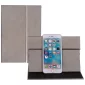 This bound journal features a soft faux leather cover of Italian PU with metal rim edges on the front flap. The journal cover folds to become a mobile device stand for small tablets and smartphones. The journal includes 80 lined sheets of 80G cream paper. Complies with Prop 65. 5.75" W x 8.25" H x 0.75" D