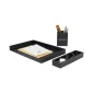 Create a defined and organized workspace that makes it easy to tackle daily tasks. Set of 3 includes: Document tray, pencil cup, and accessory tray. Document tray: 12.59L 1.02H 8.66W. Pencil cup: 3.14L 3.93H 3.14W. Accessory tray: 8.66L 1.02H 2.36W. Gift box dimensions: 12.83L 3.54H 8.81W. Complies with CPSIA, Prop 65. 8.66" W x 1.02" H x 12.59" L