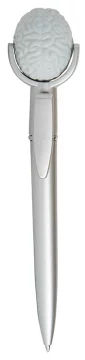 Generate more ideas with this pen! Elevate your writing experience with this sleek, ergonomic pen featuring an brain shaped stress ball at its end. Elevate your writing experience and de-stress with every stroke, making the brain Stress Reliever Pen a must-have for neurologists, professors and doctors alike. Excellent of events, universities and suppliers. Size: 6.5" long Imprint Size: 2" x .375". Complies with CCPSA, Prop 65. 6.5" L