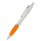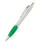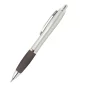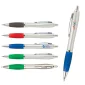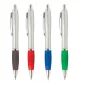 This click-action pen features high quality, black, medium point ink. Retractable curvy barrel in a variety of color rubber grips and metallic silver accents. Features a metallic silver barrel. Complies with Prop 65. 5.5" L x 0.5" Diameter