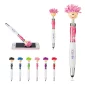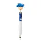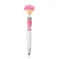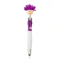 This pen features ABS Plastic click action ballpoint pen with lady happy face, glitter upper barrel, curvy silver clip and mop-top hair. Long lasting microfiber hair functions as a screen cleaner. Includes black, medium point ink. Complies with Prop 65. 6.25" L x 0.75" Diameter