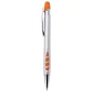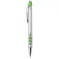 The Veneno line of writing instruments is expanding. This heavyweight 17 grams push action ballpoint plastic pen has a satin silver finish with chrome trim and color accent rubber grip with a matching rubberized plunger. 5.7500" L x 0.0000" W x 0.0000" H