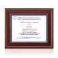 The smooth wood mahogany finish simple molding details of this certificate display give a dignified appearance for your distinguished achievement. 8.5" W x 11.0" H