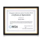 The Gilda's slim black and gold frame with exquisite beveled edge elegantly showcases any lobby or office with your skills. 8.75" W x 11.0" H