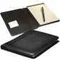This sueded full-grain leather portfolio has perimeter stitching accents. It includes a 5"x8" ruled notepad with approximately 40 sheets. Complies with Prop 65. 5.75" W x 8.875" H x 0.25" D