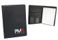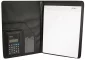 PVC padfolio with solar calculator, 20 lined notepad, interior pocket and a business card holder. Individual Polybag. 9 1/2" L x 12 1/2" H x 3/4" D