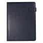 This padfolio is made of soft faux leather Italian PU features a phone stand on the top inside cover. It also includes large elastic tech pockets for power banks and smartphones, a mesh pocket, clear ID holder, and business card slots. It includes a writing pad with approximately 30 sheets of 80g cream lined paper. It also has an interior pen slot (the pen is sold separately). NOTE: Please specify whether front or back location is preferred for the optional imprint. Complies with Prop 65. 9" W x 12.125" H x 0.75" D