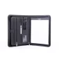 Made of vegan leather Zip around closure Letter size writing pad included Tablet compartment Pen loops Organizational section ID window Quick access front pocket. 13" H x 10" W x 1.75" D