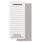 50 Page Note-Pad. Offset printed in 2 custom Pantone colours at 133 lpi. Stock Rectangular shape (2.75"x7") with square corners, no bleed edge. 2.75" H x 7" W x .275" Thick