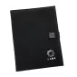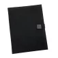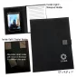A4 Size. PU leather with magnetic buckle. 4 adjustable holders can adjust to fit your tablet or phone size. Lined notepad included. Extra pockets at the back designed to hold your phone and business cards. Laser engraving logo on this leather shows silver colour. 12" L x 9.5" W x 1" H