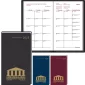 32 pages. Two-color monthly, 14 mos. (Dec.-Jan.). Includes two monthly calendar blocks & a thought-provoking quote on each open page spread, tips for the traveling executive, telephone & address pages, important dates, time zones & toll free numbers. Inside index cover includes an area code map & two-year reference calendar. Printed on recycled paper with 15% post-consumer material. USA Made. Complies with Prop 65. 3.5" W x 6.062" H x 6.062" H