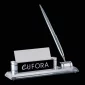 Elegant Combination of Chrome pilars mounted on a Clear base & decorated with a black/chrome laser engraved plate. 6.5" W