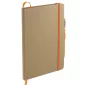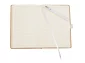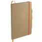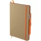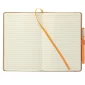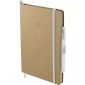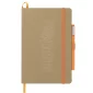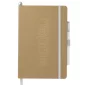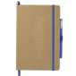 This Eco Color Bound JournalBook Set includes Eco Color Bound JournalBook and Ambassador Square Ballpoint pen. The JournalBook features a recycled paper hard bound cover, color accent painted edge pages, and color matching built-in elastic closure and pen loop. This specialty notebook includes a ribbon page marker, expandable accordion pocket, and 80 sheets of lined paper. Through a partnership with 1% For The Planet, one percent of sales are donated to environmental nonprofits. Complies with Prop 65. 0.55" D x 5.67" W x 8.5" H