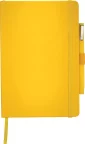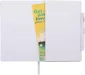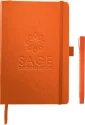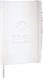 The Nova Bound JournalBook® Bundle Set includes a Nova Bound JournalBook® and Ambassador Square Ballpoint. The JournalBook® features a faux, leather-like hard cover with built-in elastic closure. This custom notebook includes a ribbon page marker and expandable accordion pocket. The Nova Bound JournalBook® Bundle Set includes 96 sheets of lined white paper. Complies with Prop 65. 6" W x 8.5" H