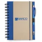 Spiral bound 80 sheet lined notebook with recycled colors. Cover color accents with matching translucent ballpoint pen and elastic band closure. 7" H x 5" W x 1" D