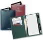 Made for synthetic leather and embellished with stitching. Contains 2 large pockets, one diagonal pocket, a notepad and a pen loop (pen not included). Hot stamp imprint up to 8 square inches. Embossing up to 6 square inches. 5 7/8" W x 4" H