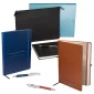 This combo includes the Tuscany™ Zip File Folder, Tuscany™ Large Journal, and Tuscany™ Executive Pen in matching colors and is packed in a blue Leeman™ gift box. The letter size folder is made of soft faux leather and features 2 front open pockets and a top zipper closure. The journal features a soft faux leather cover, and 96 ruled pages. The pen cap also has a laser engraved imprint of (1.25"w x 0.25"h). Production time may vary due to imprint method. Complies with Prop 65. 10.25" W x 13.25" H x 1.0625" D