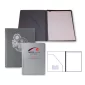 Includes a 48 sheet lined pad, diagonal pocket inside front cover and an easy slide in pen loop (pen not included). Hot Stamp Imprint up to 12 Square Inches. 9 1/4" W x 12 1/8" H