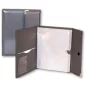 This deluxe model has leatherette exterior, full padding, stitching, 2 metal corners and a velcro fastener. Also includes 8 large letter size pouches inside. 2 opaque pouches with easy grip, on the first is a superimposed double pocket for business cards. Hot stamp imprint up to 12 square inches. 9 3/4" W x 11 1/2" H