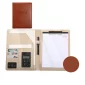 The material of this multi-function folder is PU. With an 8-bit calculator. Business card and ID card slots on the left. In the middle is a pen holder, and on the right is a notepad. Ideal for conferences, interviews, art displays, citations, lectures, and general business purposes. Can customize your logo and pattern. 13" L x 9.6" W