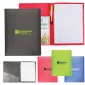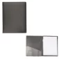 Full size 0.15 Mm Polypropylene folder with an open front interior pocket on left side and writing pad on the right side. Includes removable and refillable 8.5" x 11" writing pad with approximately 30 lined sheets. Pad may be replaced with standard letter size pads from office supply stores. It has a PP pen slot in the center (pen sold separately). Complies with Prop 65. 9.5" W x 12.313" H x 0.25" D