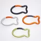 Aluminum fish shaped carabiner. It is solid, strong and durable, featuring metallic finish. This handy item is great for attaching to key holder, gym bag, backpack, belt loop, bag strap and more. Laser engraved logo is available. 2.95" L x 1.61" W