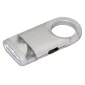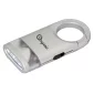 Carabiner Led Key Ring Flashlight is off when button is in center position, with the button down for single light at the end, and with the button up to get full ring of light. Includes a total of three LED lights. Utilizes button cell batteries (inserted & separated by pull tab). Use the key ring for your keys or attach to your bag, purse or backpack. A great promotional item for realtors, trade show giveaways & car dealers. Complies with Prop 65. 1.25" W x 2.5" H x 0.5" D