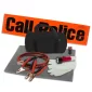 9 pieces includes: 8' booster cables (10 gauge, 200 amp clips), flashlight/signal torch, 3 "AAA" batteries, 2 pair gloves, call police banner, kneeling pad; All items pack into Medium Barrel Bag (loop and hook strip on the bottom, 600D Polyester, water-resistant and puncture-resistant). Complies with FDA, Prop 65. 11" L x 6" Diameter
