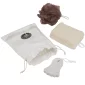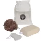 The 3-Piece Jute Spa Set includes a loofah, pumice stone and sponge for smooth skin, plus a pouch for storage. 0.00" D x 6.91" W x 10.00" H