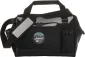 The Workmate 14" molded base tool bag is perfect for any tool enthusiast. Made out of 600D poly with a molded base this bag will stand up to the weight of all tools. It features 1 exterior side pocket, 1 front zipped pocket and a convenient water bottle front pocket. The metal wire frame provides easy access to the interior webbing loops that provide tool organization. This sturdy bag also has reinforced handle grips to provide durability while carrying. Includes padded carrying strap. 8.00" D x 14.00" W x 11.00" H