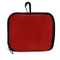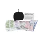 Puncture and water resistant 600D Polyester with 3-way zipper, full-swivel clip and belt loop. All items inner-packed in 3 re-sealable polybags Includes: 21 Plastic Bandages (¾"x3"), 2 Elastic Fabric Bandages (7/8"x3"), 20 Plastic Junior Bandages (3/8"x1 ½"), 2 Gauze Pads (2"x2"), 26 Alcohol Antiseptic Swabs, 2 Povidone-Iodine Ointments (0.9g), AfterBite® Prep Pad, 6 Moist Towelettes, Safety Scissors (4" long, nickel plate), and more!! Complies with FDA, Prop 65. 4" L x 4" H x 2" W