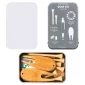 Tee off with confidence and style wherever you are with our On the Go Golf Kit, a must have for golf enthusiasts on the move. Each set includes 2 3/4" wood golf tees (4), 1 5/8" wood golf tees (2), poker chip ball markers (4), wood ball markers (2), wood divot tools (2), and a pen. The convenient tin carrying case features a secure slide lid and includes a breakdown of the enclosed items on the back, keeping everything in its place. 2 3/8" L x 3 5/8" W x 13/16" H