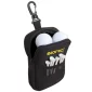 Front mesh pocket and upgraded plastic hook to attach to golf bag. Top zipper closure. Golf balls & tees not included. Complies with Prop 65. 4" W x 6.5" H x 1.5" D