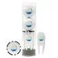 We're not kitting around when we say that this Par Pack has everything you need for your next golf outing! This kit includes two white golf balls, a poker chip ball marker, a two-prong plastic divot tool, and six blank 2-3/4 white wood tees neatly packaged in a clear tube. 1.75" W x 5.625" H x 1.75" D