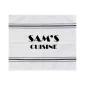 White napkin with yarn dyed stripe in Navy, light blue and burgundy. Machine washable and will soften after each wash. Stain resistant and anti-fade. Setup charge is per color. 22" L x 18" W