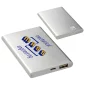 4000mAh capacity power bank in a slim aluminum exterior, 4 LED power indicatory lights, micro to regular USB cord included, UL certified Li-Polymer battery. Complies with Prop 65, UL, UN38.3. 4.25" L x 0.375" W x 2.625" H