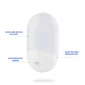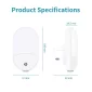 Smart Sensor Plug in Night light. Dusk to dawn sensor LED light. This night light automatically turns on at dusk and off at dawn. No additional installation steps required. Plug this into any wall outlet in your home that needs extra light. power: 0.6W Color Temperature: 2500-2700K Input Voltage: AV100-240V Lamp Luminous Efficiency (lm/w) 30LM. Available in warm light. FREE SHIPPING TO 1 METRO LOCATION. Complies with CE, FCC, RoHS. 5.7cm L x 10cm H