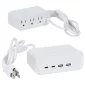 Upgrade your charging hub with our ABS fireproof AC outlet, 3 standard outlets, and 2 USB + 2 USB-C ports for 7-device simultaneous charging. Flexible 5-ft cord, fast charging, and robust safety features. FCC and ETL-certified for quality and safety. Elevate your charging experience! Complies with OU, Prop 65. 4.75" L x 2.5" W x 1.875" H