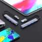 This multi USB hub for laptop quadruples your device's USB capabilities. Compatible with keyboards, speakers, external harddrives, flash drives, game controllers, and more. Supports fast transfers of up to 5Gbps and includes 1 USB 3.0 and 3 USB 2.0 ports. Features include 1 year warranty and item is tested before shipping. Complies with CE, FCC, Prop 65, RoHS. 89mm W x 17mm H x 9mm D
