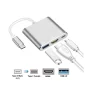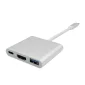 Type C To HDMI 4K/USB-C/USB 3.0 Multi-port Adapter. Compact multi port adaptor that conveniently lets you connect all your devices to new generation Type C devices such as Apple laptops, Google Chromebooks and other devices. The male Type C cable plugs into any Type C port and lets you connect to 3 female ports: USB 3.0, HDMI and Type C. Constructed with sturdy aluminum alloy and ABS plastic makes this extra durable for your daily needs. FREE SHIPPING TO 1 METRO LOCATION. 15cm L x 5.8cm W x 1cm H
